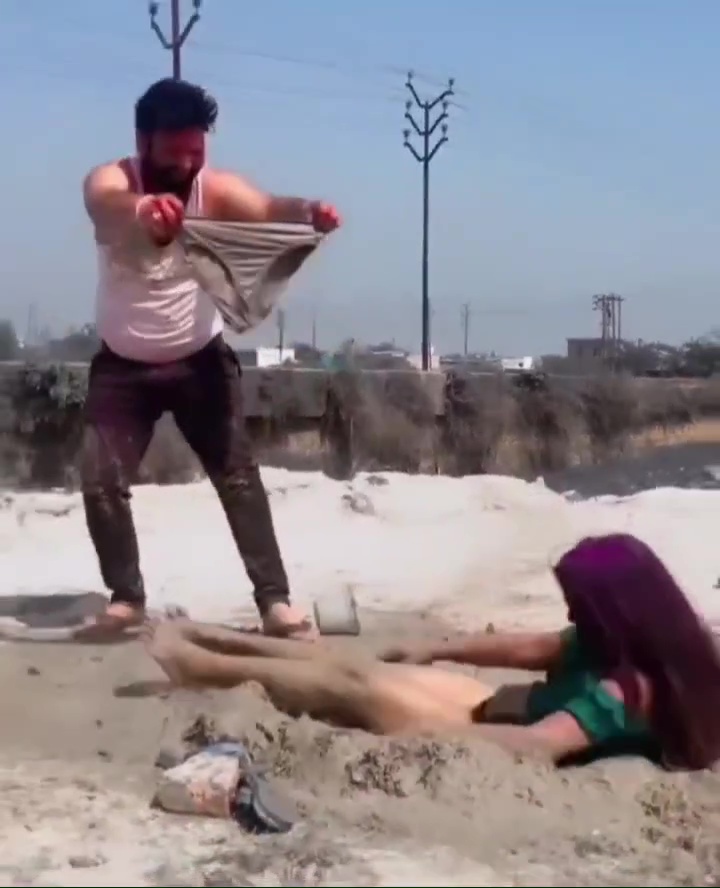 गर्लफ्रेंड के साथ होली खेलते हुए लड़के ने अपनी गर्लफ्रेंड की पैंटी उतार दी और खुद पैंटी पहन ली.