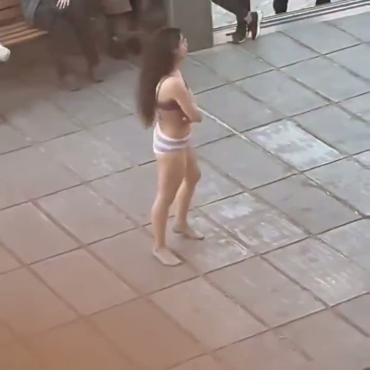 लड़की एक पुब्लिक प्लेस पर केवल ब्रा और पैंटी में बैठी रही. फिर वह उठ कर लोगों के बीच में घूमती हुई अपनी बात कहती रही.