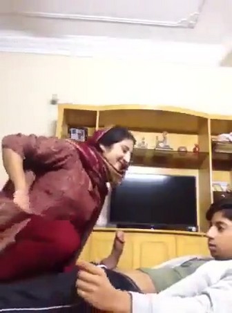 उसकी अम्मी खुश होती हुई आई और अपनी लेगिंग नीचे सरकाकर अपने बेटे के लंड को चूत में टिका कर उस पर बैठ गयी.